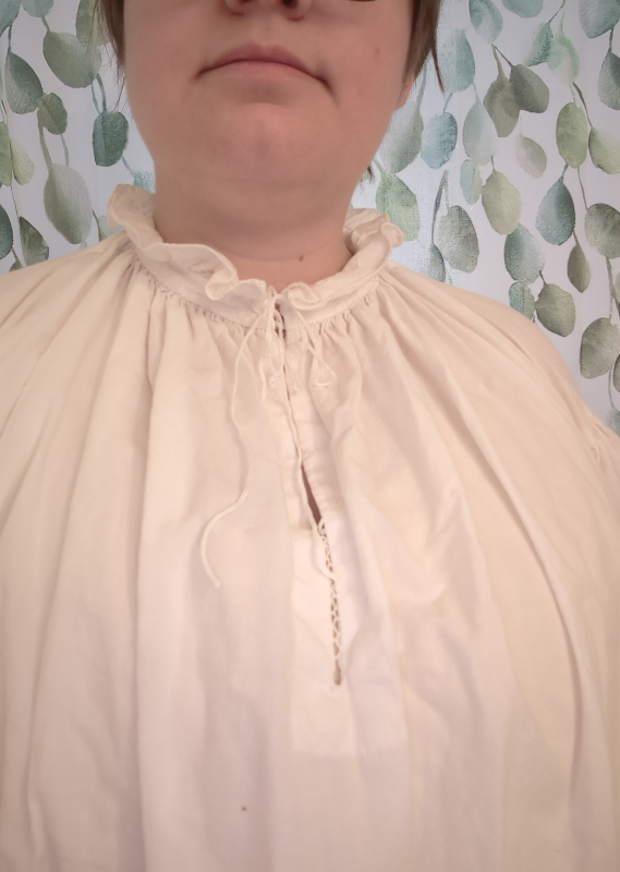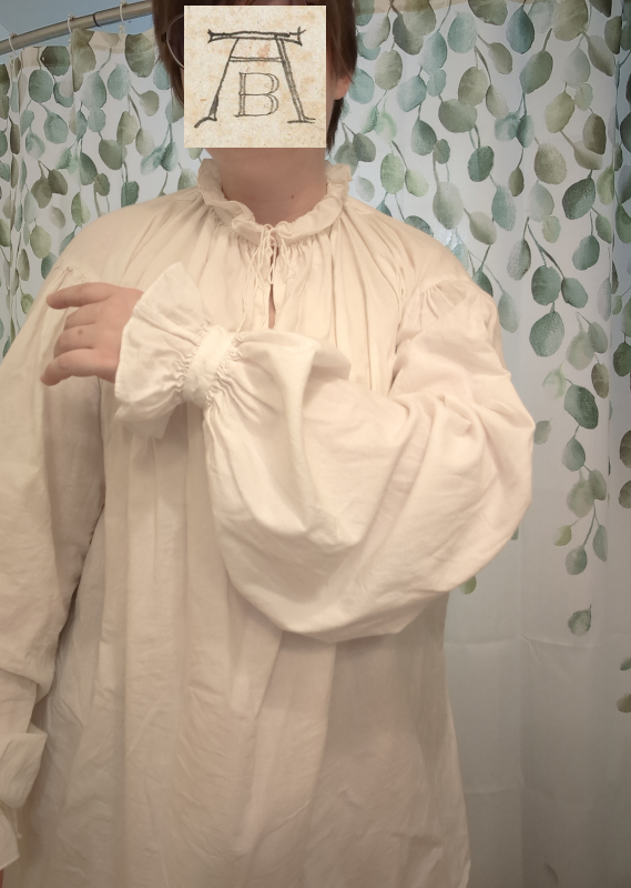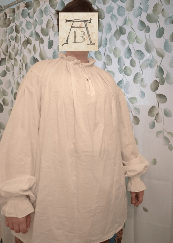 I meant to do a breakdown of my costume last year after Ren faire season wrapped up to show off individual pieces and to cover the upgrades and new pieces I wanted to make for 2026. Better late than never, y’know? Thanks to my peerless skill with my phone’s camera’s timer function, we can take a brief look at my shirt.